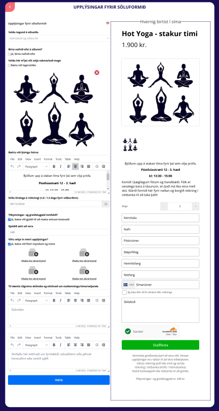 Þú sérð strax hægra megin á skjánum hvernig sölusíðan mun líta út í símaviðmóti.
