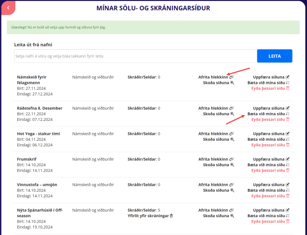 MÍNAR SÖLU- OG SKRÁNINGARSÍÐUR