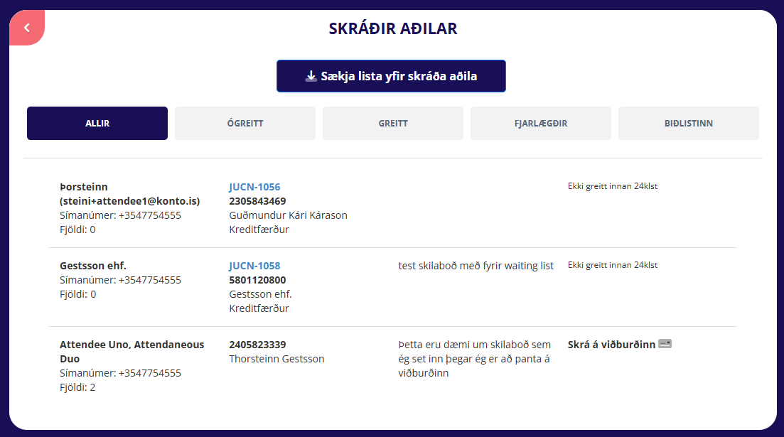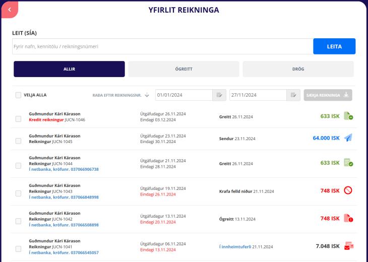 Dæmi: Aðili sem stendur fyrir mánaðarlegri ráðstefnu þar sem mæta að meðaltali 125 manns. Hann er í ársáskrift að FRÆ og kaupir 1.500 inneignir fyrir reikningagerð í einu lagi. Mánaðarlegur kostnaður hans (meðaltal) er 31.040 kr. (+vsk). Ef hann setur t.d. 200 kr. (+vsk) tilkynningar- og greiðslugjald á reikninga þá fær hann 25.000 kr. af þeim kostnaði til baka. Mánaðarlegur kostnaður því um 6.040 kr.